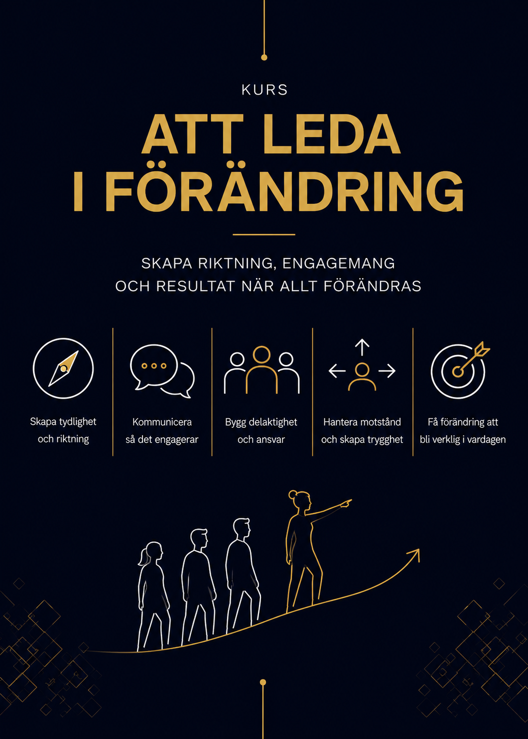 Kursen riktar sig till ledare på alla nivåer som vill bli tryggare, tydligare och mer effektiva i att leda människor genom förändring.